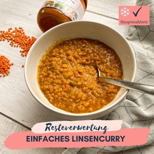 Nämlich ein einfaches und schnelles #linsencurry mit einem Rest roten Linsen und ein angefangenes Glas Veggie Bolognese von Pumpkin Organics [WERBUNG].