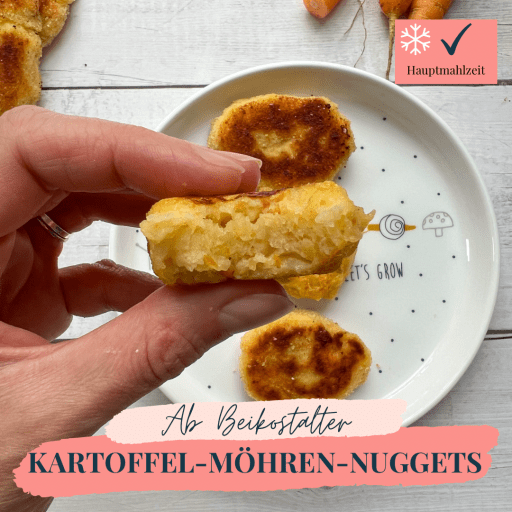 Daher gibt es heute leckere Kartoffel-Möhren-Nuggets. Die Nuggets schmecken warm und kalt – mit Dip.