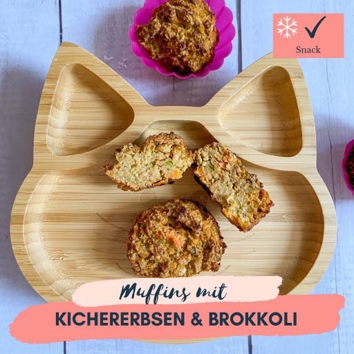Den Backofen auf 180 °C vorheizen. Einen Topf mit Salzwasser aufsetzen und dort den Brokkoli für 5 Minuten kochen. Die Erbsen und Möhren direkt dazugeben. Dann das ganze unter fließenden Wasser kalt abschrecken. Dann alle Zutaten in einen Mixer geben und so lange mixen bis der Teig gut vermengt, aber nicht zu fein ist. Den Teig in gefettete Muffinformen füllen und für 20-30 Minuten in den Ofen schieben bis die Muffins goldbraun und knusperig sind.Muffins mit Kichererbsen & Brokkoli