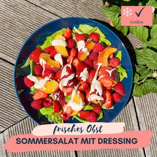 In diesem Fall haben wir uns für einen frischen #sommersalat mit Obst und Salat aus unserem Garten entschieden.